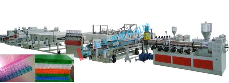 中空格子板設(shè)備用于PC、PE、PP中空格子板連續(xù)生產(chǎn)。產(chǎn)品廣泛用于建筑裝飾、廣告布置、包裝等領(lǐng)域。PE、PP格子板可以代替紙箱作包裝箱,質(zhì)量輕、強(qiáng)度高、防潮、防腐。