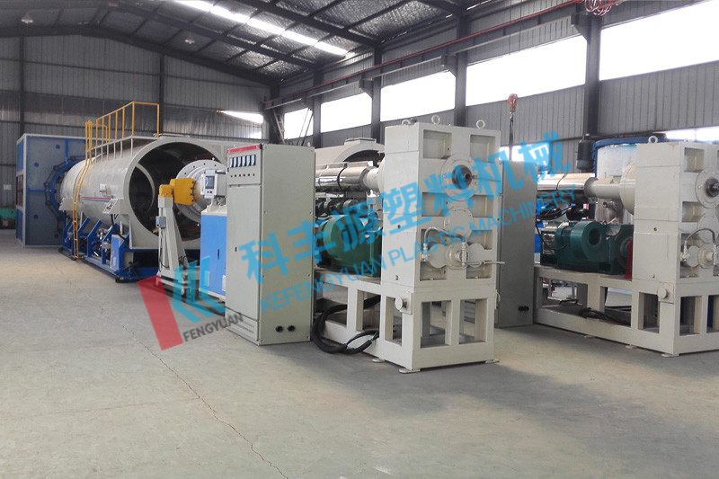 真空定徑法保溫管設(shè)備,是我公司消化吸收德國技術(shù)而研制開發(fā)的新型保溫管設(shè)備。 真空定徑法保溫管設(shè)備集擠出、真空定徑、冷卻、牽引、切割、卸料于一體。具有自動(dòng)化程度高、產(chǎn)量大、性能穩(wěn)定、壽命長、適用于再生料等特點(diǎn),特別是與內(nèi)壓法生產(chǎn)的管材相比,無論從環(huán)剛度、承壓力等各方面性能指標(biāo)遠(yuǎn)超1/3之多,目前是國際上先進(jìn)、流行的防腐保溫大管生產(chǎn)線系列產(chǎn)品。